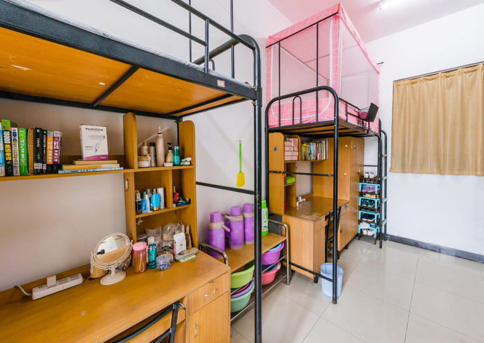 目前西电本科新生宿舍均采用上床下桌结构,床铺尺寸为1.9m*0.9m,每个人都有自己的一片小天地哟~