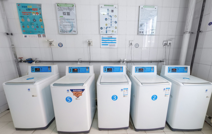 关于洗衣问题,每层楼均设有一定数量自助洗衣房,学生通过APP操作可实现自助洗衣。当然了,小电还是建议,不要贪图方便一股脑全都丢进洗衣机,“自力更生”也是极好的~