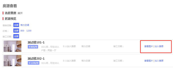②进入选房系统后请先进入“房源预览”查看可选房源图片和相关信息,在喜欢的房源右侧可点击“加入意愿”,在后续正式选房阶段可“一键选房”。