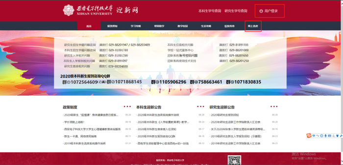 1.方法一:点击右上角“用户登录”--输入用户名(学号)、密码(身份证后六位)--点击“网上选房”--进入选房系统。