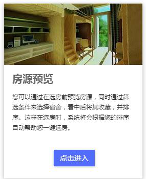①选房系统正式开放后进入选房系统,预选房卡片将变更为选房卡片,操作流程与预选房相同,也可通过“一键选房”按钮完成选房。由于房源紧张,楼层和房间位置俱佳的宿舍非常抢手,建议大家使用“一键选房”功能增加选到满意房源的几率。