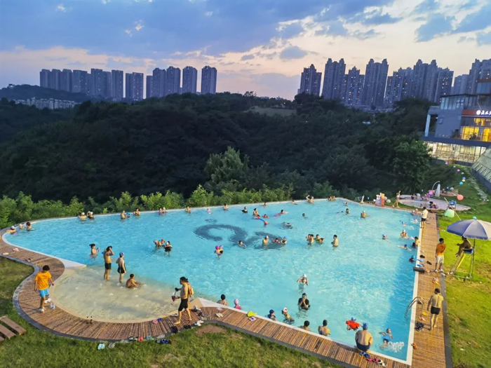 8月28日,重庆,不少市民在两江新区28度活水馆游泳。随着酷热的八月份即将结束,市民纷纷选择安全措施较好的游泳池游泳消暑,抓住夏天的尾巴!邹乐 摄