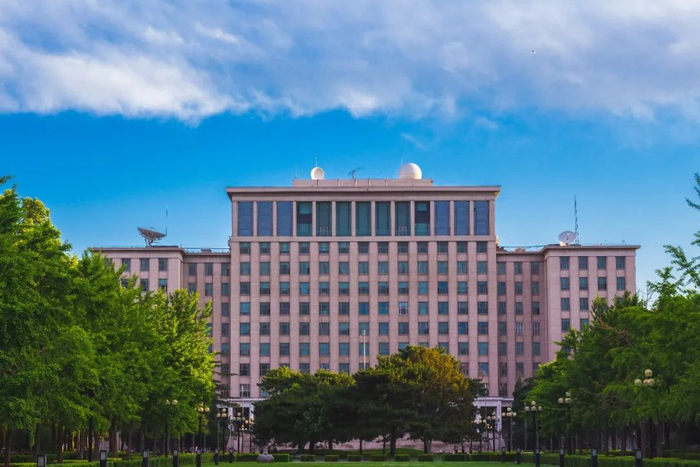 旗帜在主楼前升起