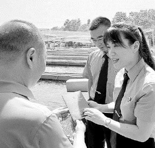 8月14日,长寿区检察院检察官向程某赠送“保市场主体,护民营经济”专项行动宣传手册,并为其宣讲相关政策。