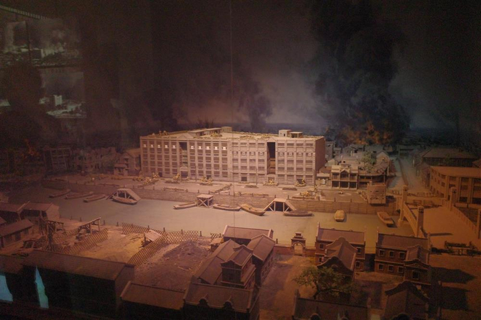 这张地图制作于1937年“8•13”事变前,详细描绘了闸北区的街坊、道路、居宅,还标记出了日本人控制的“公大一社宅”“俱乐部小”“公大二社”“新女”等保护性场所。纪念馆正是根据这张地图,制作了当年的城市建筑分布模型。