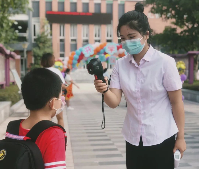 学校今天共有7个班近300名新生报到,为保障师生安全和学校开学报到秩序,学校要求报到时家长和学生入校时接受体温检测,并出示健康码。