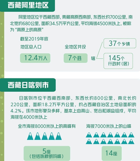 阿里、日喀则均位于西藏西部。尤其是阿里地区,它是距离首府拉萨最远的地市,被人们称为“天边阿里”。日喀则市是西藏第二大城市,也是西藏脱贫攻坚三大主战场之一。从拉萨沿着雅鲁藏布江一路西行,但见雪山雄伟、草原辽阔、青稞飘香、牛羊肥壮。在这片广阔的土地上,生态保护成效显著、特色产业动力强劲、人们的幸福指数不断攀升。