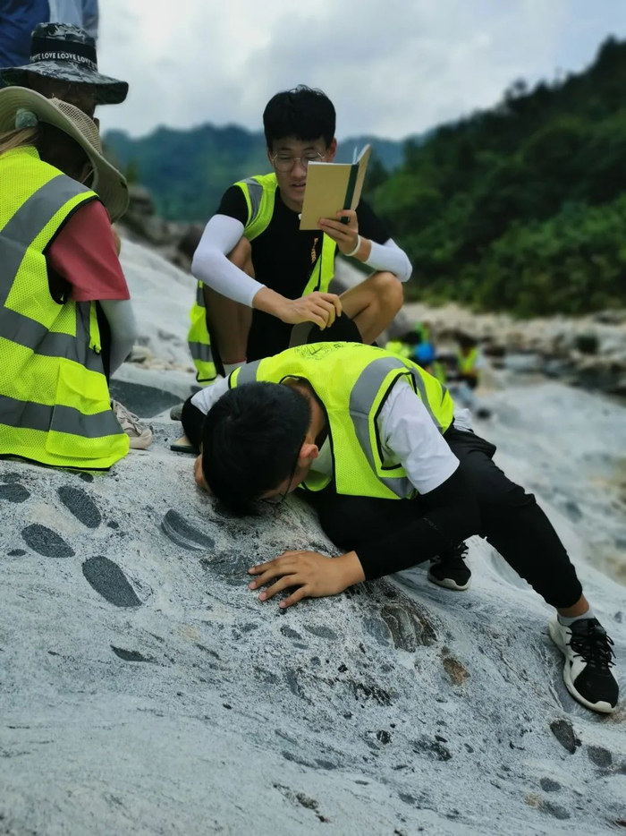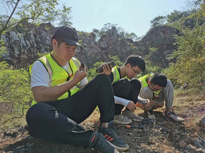 “当我在烈日下看到被汗水浸透衣衫却还在热情讲解的老师;当我在骄阳下使用地质锤近距离敲打岩石;当我第一次拿起罗盘测量岩石产状,我便深刻地理解了:地质的独特魅力,值得每个地大人去探索和体会。”环境学院046191吕楠同学说到。