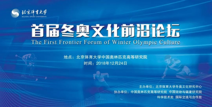为贯彻落实党的十九大对体育工作的重要指示,积极投身健康中国和体育强国建设,努力实现冬奥会“办赛精彩,参赛也要出彩”目标,由北京体育大学冬奥文化研究中心主办,北京体育大学中国奥林匹克高等研究院、中国运动与健康研究院、科学技术处和国际交流与合作处联合协办的首届冬奥文化前沿论坛于2018年12月24日在北京体育大学成功举办。国内知名学者专家和相关从业人员展开围绕冬奥及冬奥文化的学术交流与研讨。