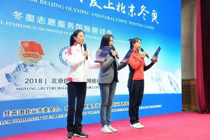 2018年10月20日,由共青团北京市委员会、北京市志愿服务联合会、北京体育大学主办的北京体育大学冬奥志愿服务国际研讨会在我校师统讲堂举行。共青团北京市委员会副书记兼北京市志愿服务联合会秘书长李健,联合国志愿人员组织亚太区域主任 Shalina Miah,联合国志愿人员组织亚太区域副主任兼项目经理Manon Bernier,国际志愿者工作专家Tatiana Gomzyakova,2018年平昌冬奥会冬残奥会志愿者部项目经理Raimee Je,北京体育大学党委副书记邢尚杰,北京冬奥组委运动员委员会委员陈露,北京市志愿服务指导中心副主任李磊,清华大学、北京大学、中国人民大学、北京师范大学、北京理工大学、北京科技大学、北京航空航天大学、北京工业大学团委有关领导,我校专家学者和部分奥运冠军、世界冠军参加了本次研讨会。研讨会由北京体育大学团委书记陈中主持。
