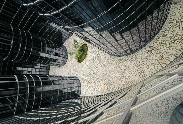 大楼内部大片的落地窗,伴随着日光、月色、灯照可以产生不同的色调,与环境融为一体。天气晴朗时,阳光可以直接透过玻璃铺洒在室内,为师生们一天的工作与学习带来充沛的活力。互相反射成像的玻璃盒子形式,散发出强烈的现代感和科技感。既能仰望苍穹,亦会脚踏实地,这既是院楼设计的细节巧思,也是现代工学院人立志顶天立地精神气质的生动体现。
