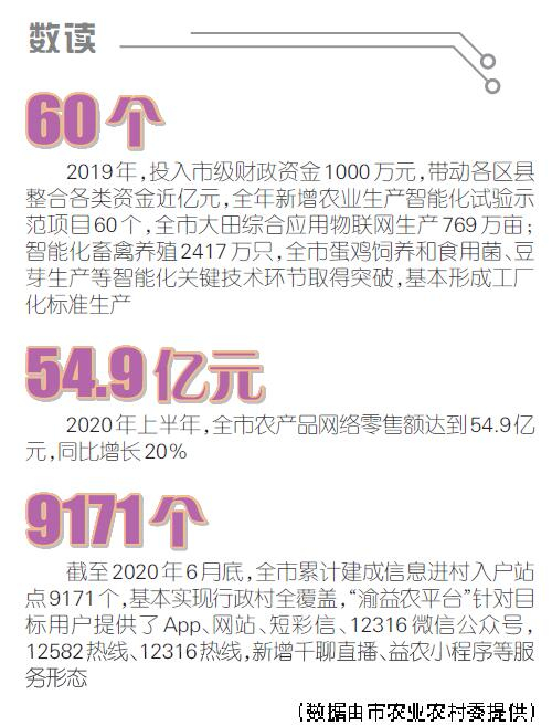 智能种植、物流送货上门,这样的智慧农业项目,全市还有不少。市农业农村委相关负责人透露,2019年,我市市级财政投入资金1000万元,带动各区县整合各类资金近亿元,新增农业生产智能化试验示范项目60个。