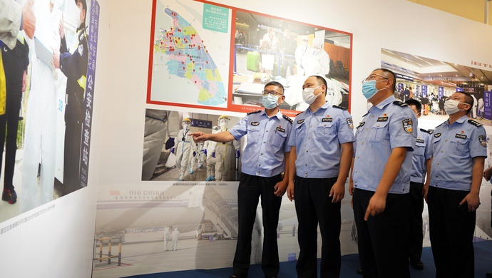 今天下午,市公安局集中组织一批在抗疫一线工作的优秀先进民警代表来到“我们众志成城”上海防控新冠肺炎疫情主题展览现场参观。