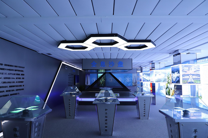 此外,记者在现场看到,为了更直观地展示建成效果和建设进度,现场智慧建造展厅还打造了手术室、护士站、停机坪等空间的三维虚拟样板,以及模拟施工建造的全息沙盘。