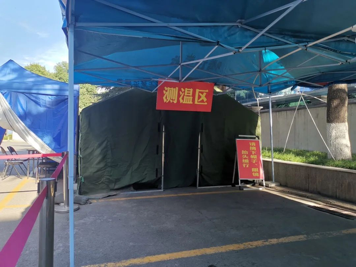 3.测温:靠近并面朝自动测温设备,摘下帽子并有序通过,测温结果正常的进入学校,测温结果异常的配合工作人员前往隔离区复检。