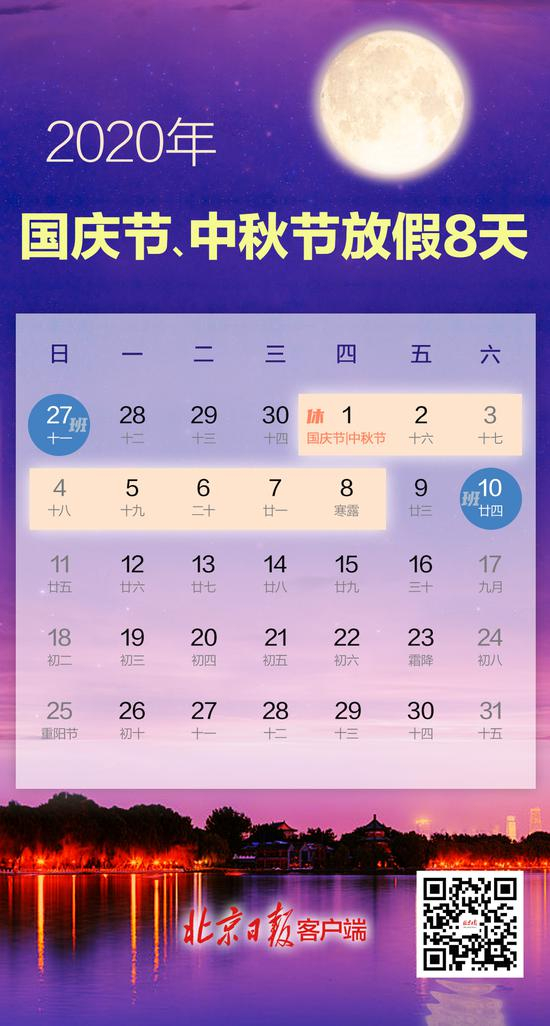 原标题:连休8天!2020年国庆节中秋节放假安排来了