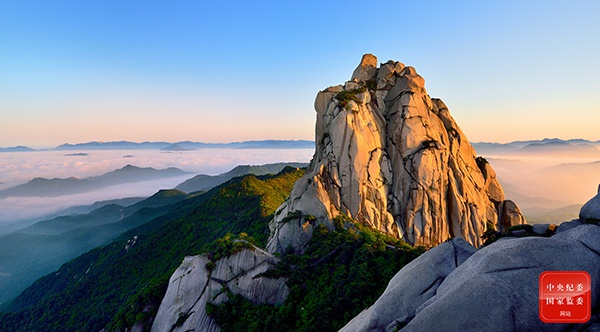 安徽天柱山世界地质公园以郯庐断裂带上最美花岗岩地貌闻名于世,其主峰海拔1489.8m,独立高耸、如柱擎天,故名“天柱”。天柱山呈现出奇峰、怪石、幽洞、峡谷等自然景观,以雄、奇、灵、秀而著称于世。园区内40多个地点发现60余种脊椎动物化石,被公认为“亚洲哺乳动物的发源地之一”“古脊椎动物化石的宝地”。(安徽省潜山市纪委监委供 王立新 摄)
