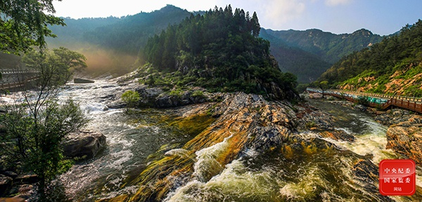泰山世界地质公园是中国早前寒武纪地质研究历史最悠久、地质现象最丰富的经典地区。十里山涧,水漫彩石,潺潺流水,犹如泼墨大写意,沿溪可观赏色彩斑斓的带状彩石,十八亿年五世同堂的地质奇观。彩石溪由此而得名,是泰山游客喜欢的景点之一。(山东省泰安市纪委监委供 刘慧 摄)