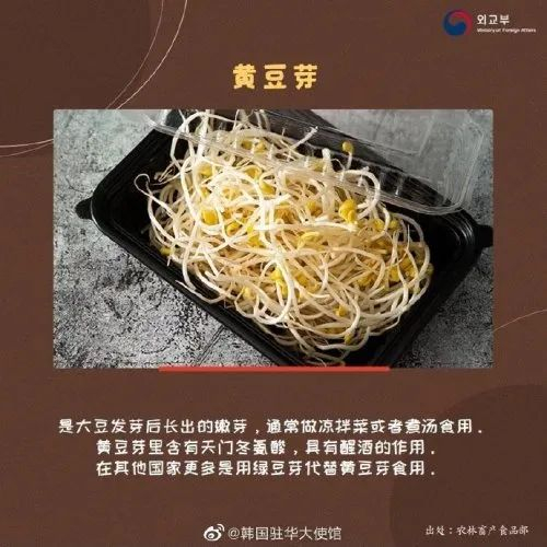 黄豆芽。“其他国家更多是用绿豆芽代替黄豆芽食用”。