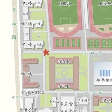 这是一道观察题,看镜中的画面是西操场的一角就能猜到啦~