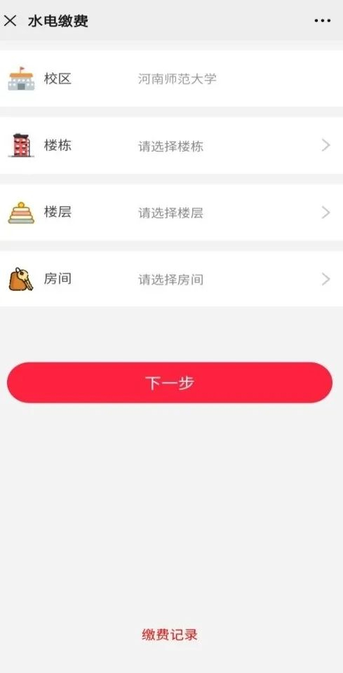 4.选择自己的宿舍就可以进行网上缴费啦
