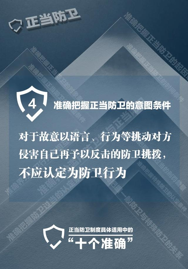 四是准确把握正当防卫的意图条件。