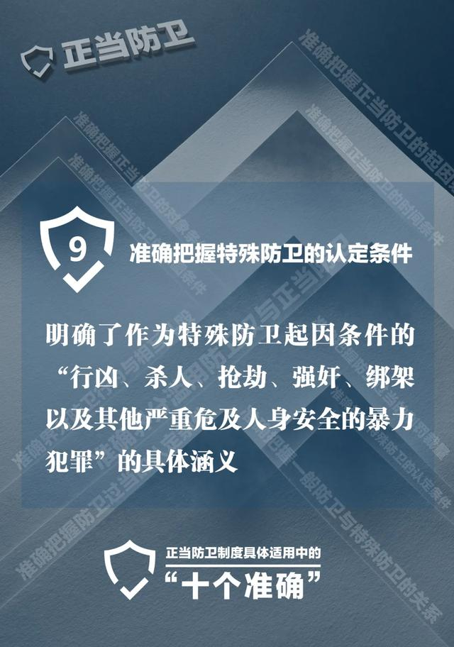 九是准确把握特殊防卫的认定条件。