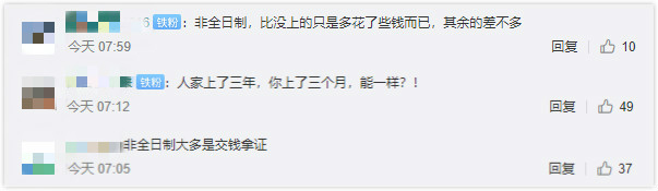 企业冷眼相看,社会舆论对“非全”也并不宽容,“拿钱买证”“学历水”“上了几个月学”不绝于耳。