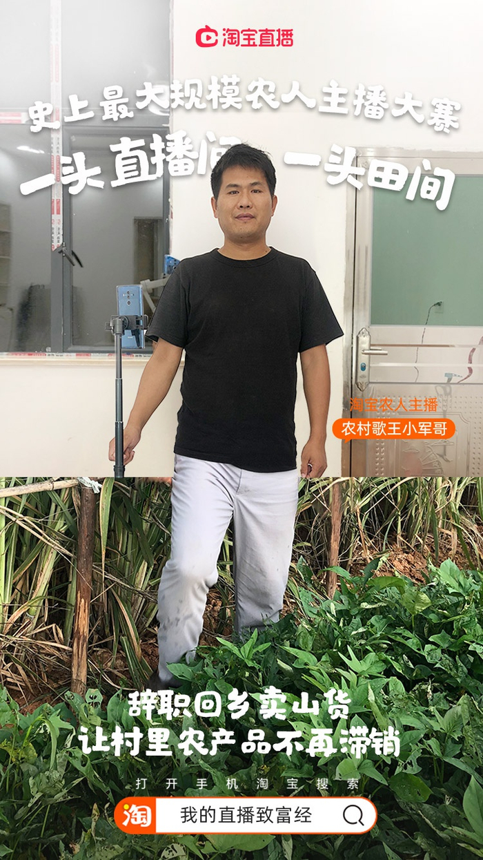 淘宝直播正在给更多像小军哥这样的新农人一个更大的舞台。9月4日,淘宝直播开启了史上最大规模的新农人主播大赛,将覆盖陕西、云南、湖北、广东、山东、浙江等全国各个省份。上手机淘宝搜索“我的直播致富经”,就可以测测你适合直播带什么农产品。