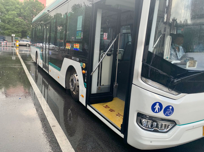 司机季师傅告诉记者,如有前来乘车的轮椅使用者,他会将车停靠在离站台较近的位置,展开折叠在后门下方的无障碍通行踏板,将踏板另一端搭在站台马路路肩,协助轮椅使用者上车。