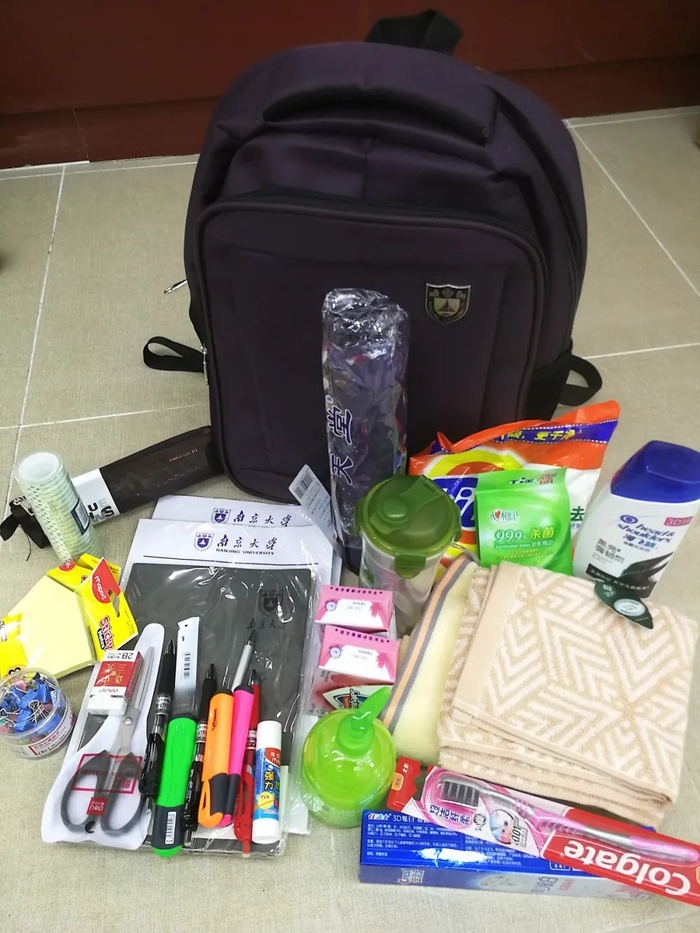 学生资助管理中心还为部分家庭经济特别困难学生准备了一份特别的大礼包——南大定制书包、雨伞、日常生活学习用品、U盘、《南京大学励志模范成长故事》、寝具等。