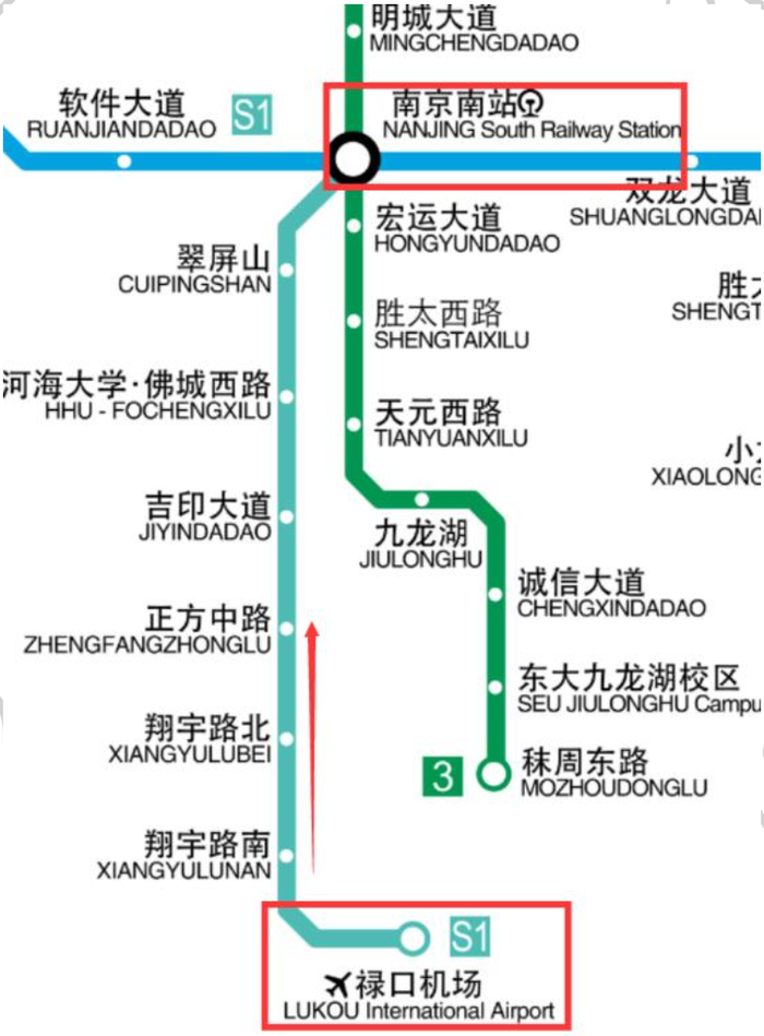 地铁S1号线 → “南京南”站换乘,后参考铁路到达南京南站情况