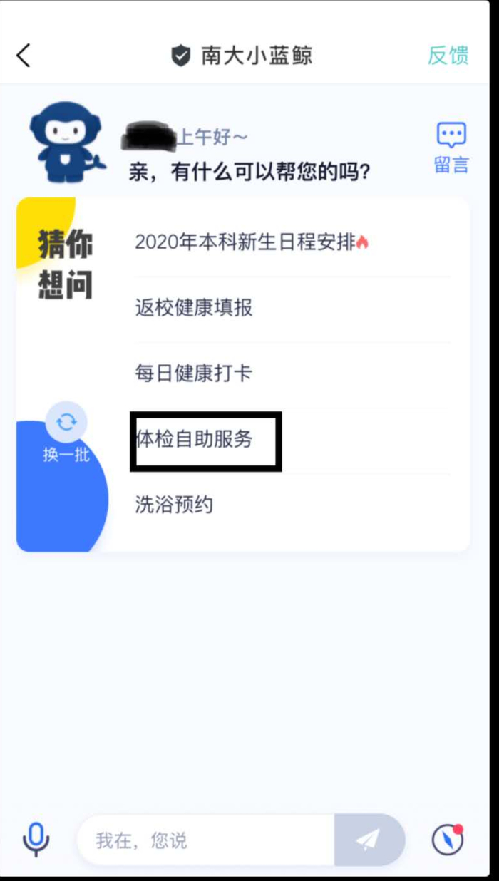在南京大学APP“体检自助”服务预约体检。操作方式及顺序如图所示: