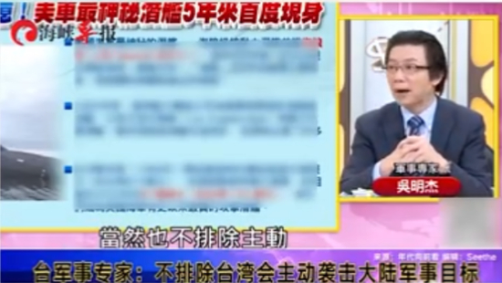台湾“军事专家”吴明杰近日在岛内电视节目中说,“台湾除了防卫的各种策略手段之外,当然也不排除主动去袭击大陆的部分军事目标”。