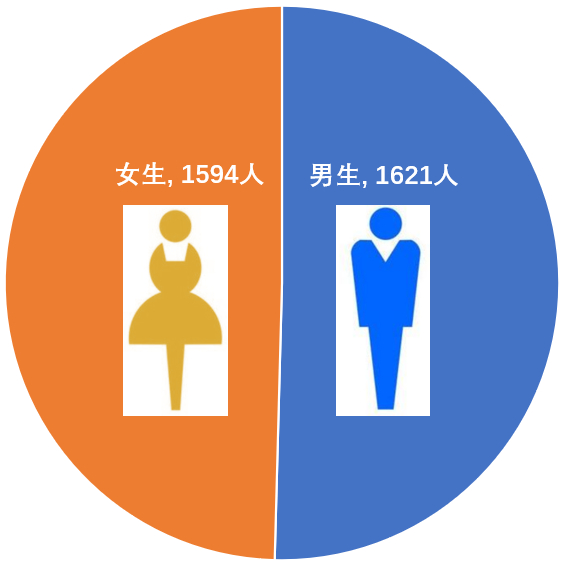 男女生比例1.2 : 1。