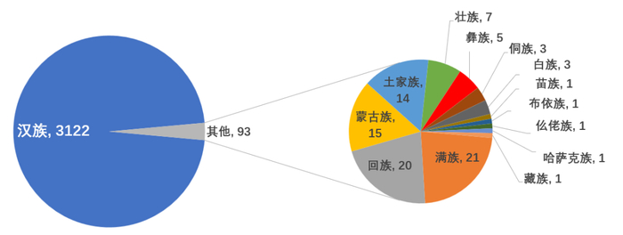 位列硕士姓氏人数榜前三名。