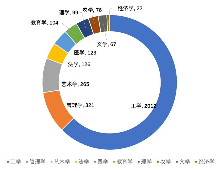 其中工学人数最多。