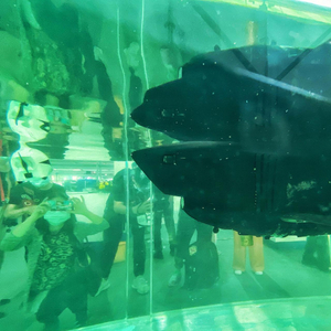 赵鹏介绍,早期这种水下仿生机器人主要应用于军工领域,后来进入民用市场,功能根据需求削减调整,主要在海洋馆和科技馆用于表演、科普。民用领域的仿生机器人外观更丰富,现场展示的除了鲨鱼形态,还有金鱼等小型鱼类形态。