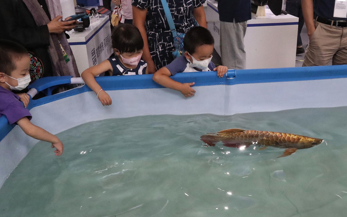 新京报快讯(记者 黄哲程 张璐)今天(9月5日),2020年中国国际服务贸易交易会(简称“服贸会”)正式面向公众开放。在服贸会服务机器人板块展区,一条在水缸中游动的“大鲨鱼”引来不少观众围观和拍照。