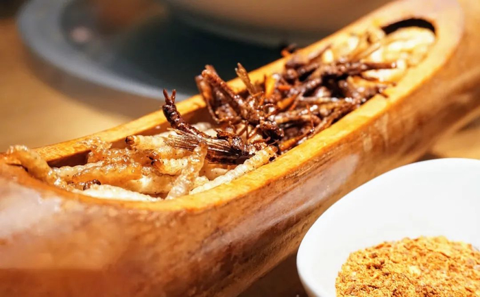 (三个蚂蚱一碟菜——油炸竹虫、蚂蚱)