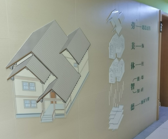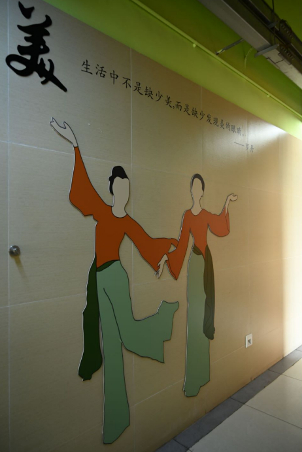 “美”:美育室。以美育室为载体,开展传统文化教育,让学生在社区中传承和弘扬中华优秀传统文化;开展校史校情教育,在耳濡目染的环境中加强学生爱国荣校教育;形成特色楼宇文化和宿舍文化,开展“一楼一品”“最美宿舍”等社区品牌活动。