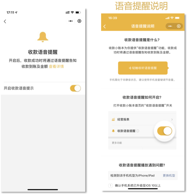 微信收款音箱支持线下交易场景每一笔订单的语音播报,商家能实时“用耳朵”核查收款情况,避免因为客群繁杂、人力有限而产生的收款耗时长、容易混乱等问题,让经营变得更轻松高效。数据显示,已有超过95%的小店主通过“语音提醒”享受到了便利的收款到账服务。