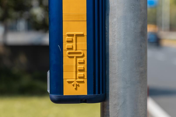 相较旧式过街按钮,升级后的行人过街自适应音响及按钮设计更加美观,在新增LED光带与显示灯的同时,还增设了视障人士触感指示及声响引导。距离盲道约一臂距离,按钮箱侧方专门添加了浮雕触觉地图,可以帮助视障人士了解马路方向、路面宽度、车道类型等信息。