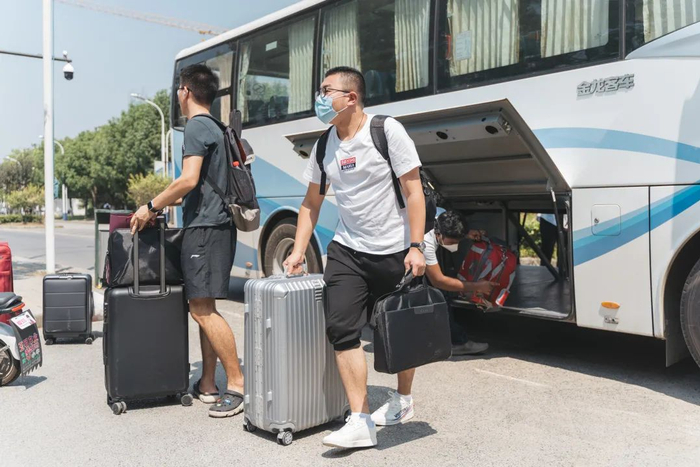 前来报到的研究生新生在师生志愿者和工作人员的帮助引导下搬运行李,并依次完成出示苏康码、验证校园卡、检测体温等一系列流程,审核通过后有序走进期待已久的东大校园,乘坐接驳车前往宿舍区办理报到手续。