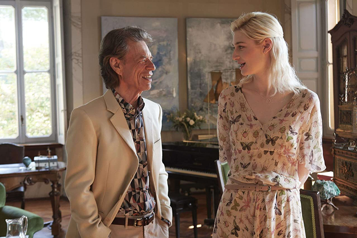 米克·贾格尔进组的那天,剧组已经在拍摄的中期,伊丽莎白在全剧组的意大利口音环绕立体声中得知这一消息。那是一个普通的午后,她正在补妆,当听见人群骚动的时候,她猛然抬头,就看到镜子反射的画面,“是米克·贾格尔!于是我觉得应该要主动打开僵局,我悄悄溜达到角落,我得主动上前,不然被人看到我偷偷摸摸的样子就太尴尬了,然后我凑近了,他正好转身,我永远也忘不了这个场景,因为他正用一只脚环住另一只,嘴里塞着巧克力碎饼干。整个画面一度非常奇怪。”米克自然地打招呼并介绍自己的名字,伊丽莎白陷入憨笑状态:“我知道你是米克。”