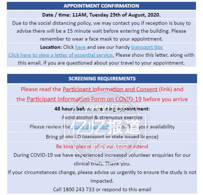 我是4月报名,但是在7月前都没人找我。我以为这事就过去了。结果在8月的时候,Novavax疫苗进二期了,问我去不去,我就准备好了打算去这个。