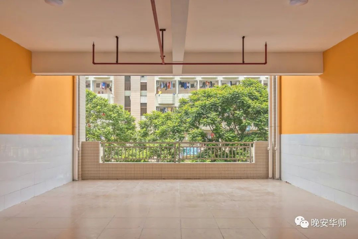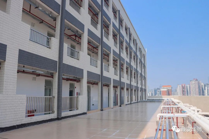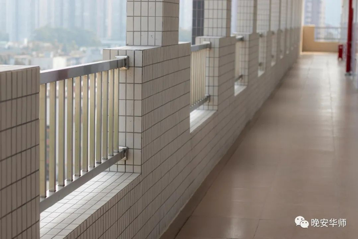 虽然楼层较高,但东十一的设计充分考虑到了学生的安全问题。现在所有的护栏,包括围墙的高度都在1.5-1.6m之间,这个高度能够保证学生即使冲撞到护栏上,护栏的高度也在胸部以上,从而有效防止学生意外坠落。