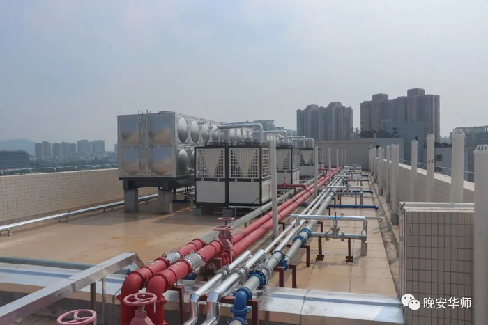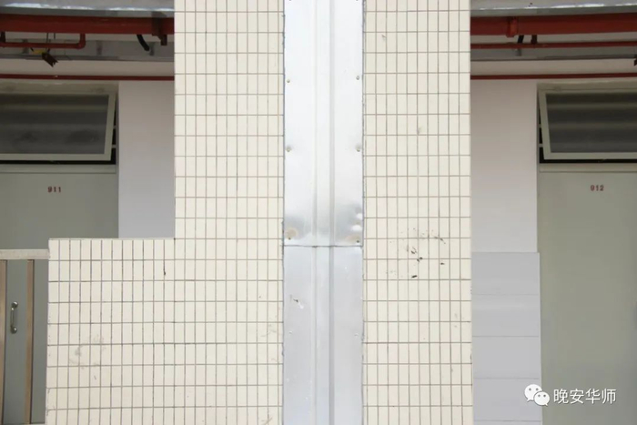 第二个较大的改动是北面房间污水系统八楼天面通气口。原设计,北面房间污水系统的通气口直接设置在北面房间八楼天面上。但在建设时考虑到,南面房间九楼到十二楼的学生在某个季节风向改变的时候可能会闻到北面八楼天面通气口排出的臭气。为了避免这种情况,将北面八楼天面的通气口贯通为网络状,再将汇总的管道直接连接到南面十二楼天面上。