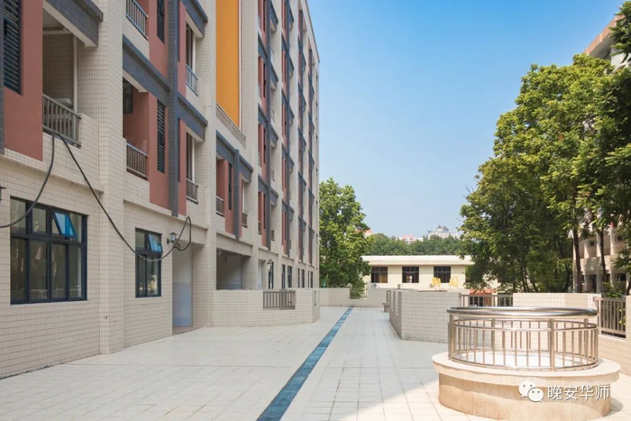 布局形式规整,建筑形式简洁、明快,突出横向线条,色彩以白为主色调,以暖色为辅,表面以淡黄色、灰白色的小瓷片贴片,与校园环境融为一体,整洁又美观。