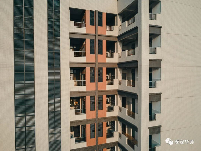站在东11宿舍楼9层平台上眺望,校内风光尽收眼底,拂面吹来的是通风洞口设计带来的穿堂冷风。凉风徐来,惬意舒适,带来愉快好心情。